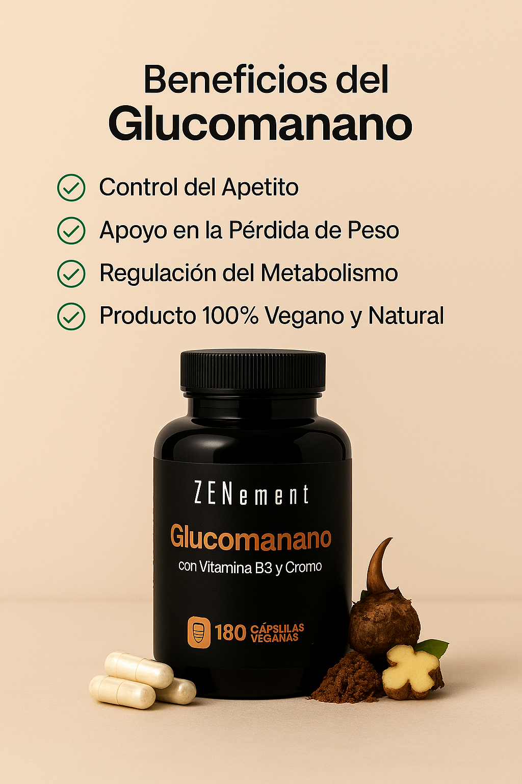 El glucomanano ayuda a aumentar la sensación de saciedad, lo que facilita reducir la ingesta calórica y mantener una dieta equilibrada.